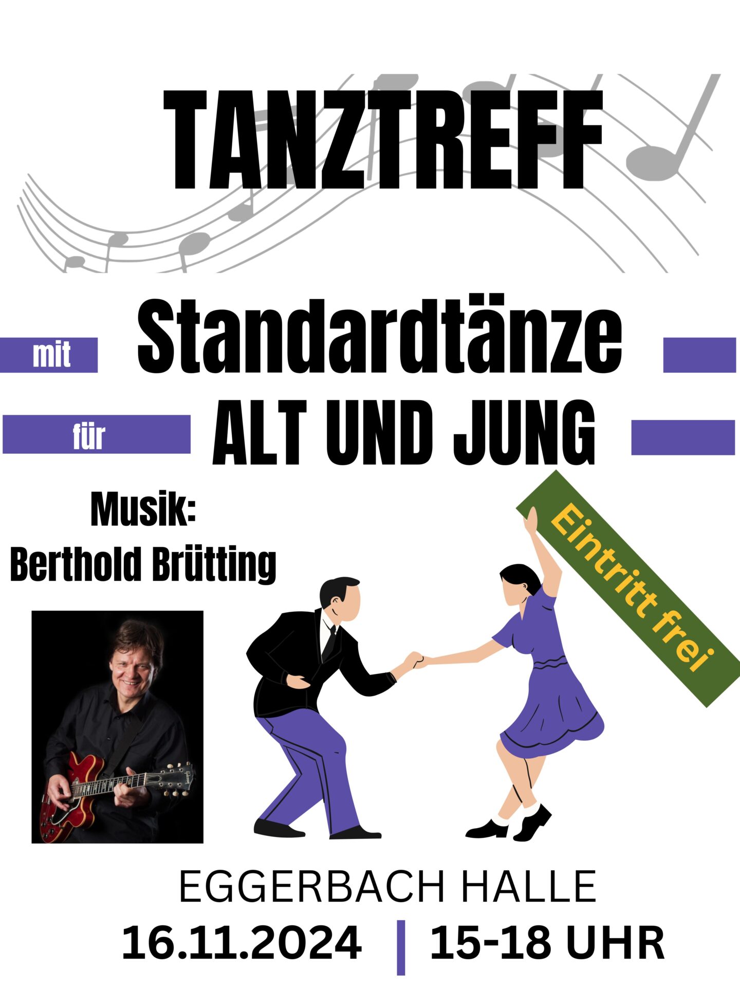 Am 16. November 2024 laden wir sie zum nächsten TanzTreff in die Eggerbach-Halle in Eggolsheim ein – ein Event, das Generationen verbindet und für alle Altersgruppen eine unterhaltsame Zeit verspricht. Von 15:00 bis etwa 18:00 Uhr wird im Veranstaltungssaal zu den schönsten Standardtänzen das Tanzbein geschwungen. Ob Walzer, Foxtrott oder andere Klassiker, für die passende musikalische Begleitung sorgt Berthold Brütting von B&B Musik, der mit seiner Erfahrung für Stimmung und Schwung sorgt.