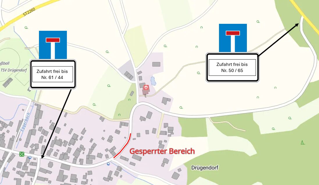 Startseite » Aktuelle Ereignisse » Temporäre Vollsperrung in Drügendorf